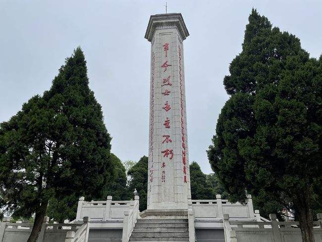 陵园位于新县城南白毛尖,建于1957年,占地330亩。由《燎原》浮雕墙、烈士纪念碑、烈士纪念堂、革命斗争史陈列室、吴焕先半身塑像、烈士纪念亭、烈士墓地等组成。相应的旅游设施有百亩茶园、竹海、旅游步道、白马潭廊亭、流水曲桥、铁索吊桥和400米豫南第一滑道等等。陵园安葬近百位著名烈士和红军首长遗骨,纪念着鄂豫皖苏区13万革命烈士,集中反映了英雄的鄂豫皖苏区人民在党的领导下,从大革命时期到新中国成立的漫长岁月中所走过的光辉历程和建立的丰功伟绩。是全国属建筑时间早、烈士资料齐全、知名度高的烈士陵园之一。鄂豫皖革命根据地先后举行了著名的黄麻起义、商南起义和六霍起义。仅首府所在地的新县人口不足10万,就有5.5万人为革命献出了宝贵生命。鄂豫皖苏区为革命献身的无数革命先烈的杰出代表就有:潘忠汝(黄麻起义总指挥)、徐子清(商南起义总指挥)、舒传贤(六霍起义总指挥)、许继慎(红一军军长)、蔡申熙(红二十五军军长)、邝继勋(红四军军长)、曾中生(鄂豫皖区特委书记)、沈泽民(鄂豫皖省委书记)、吴焕先(红二十五军政委)、高敬亭(红二十八军政委)。